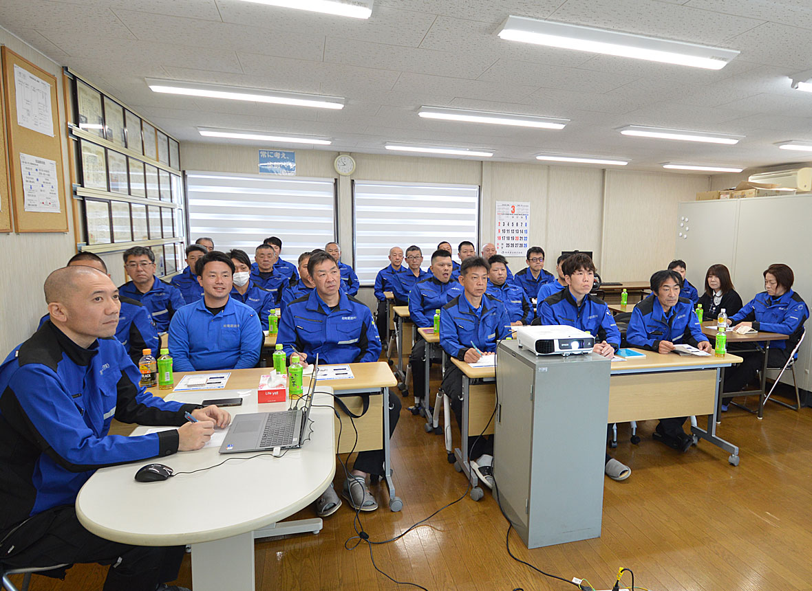 品質の向上に必要不可欠な「最大限のドライバー教育」は弊社の経営方針の一つです。弊社の月次ミーティングでは、業績及び業務報告のほか、事故・トラブルも報告してドライバーで情報を共有化。事故の再発防止に努めております。また、定期的に交通事故防止及び省燃費運転研修会や、外部講師を招いたマナー講習会なども実施しております。さらに年1回、集合研修を開催し、荷役時の心構え・注意点、基本動作・安全ルールの再確認、事故・トラブル事例を教材とした事故防止教育を継続的に講じております。その際には協力会社のドライバーにも参加していただき、一定のレベルに達したドライバーには「自主荷役認定書」を交付するという協力会社を含めたドライバー教育も徹底しております。